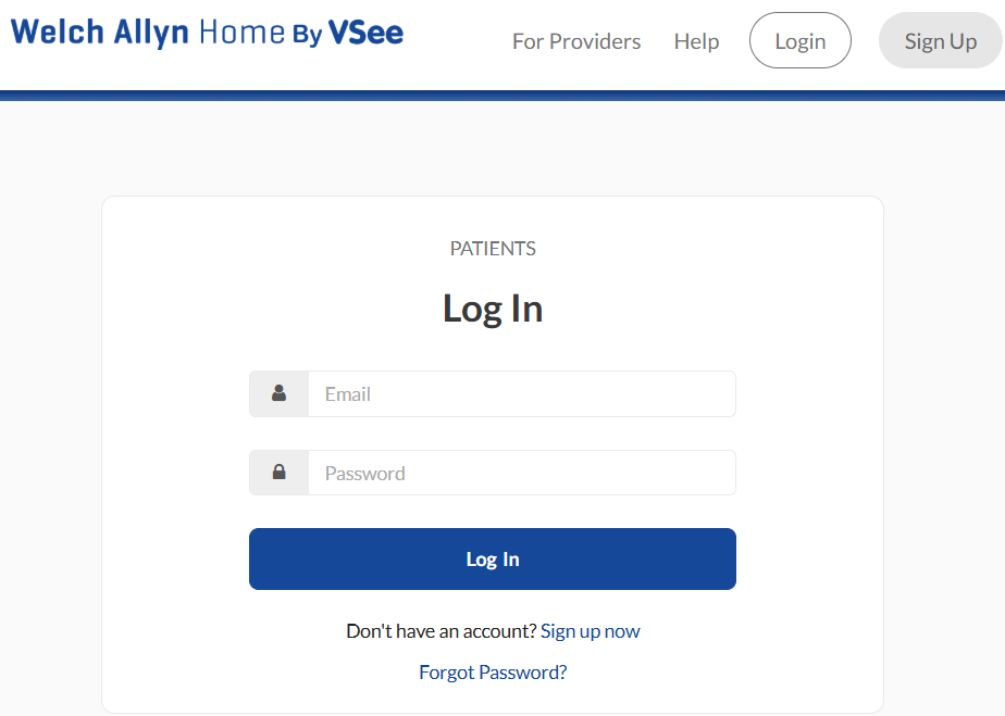 Go to the Welch Allyn Home by VSee website and log in to your account