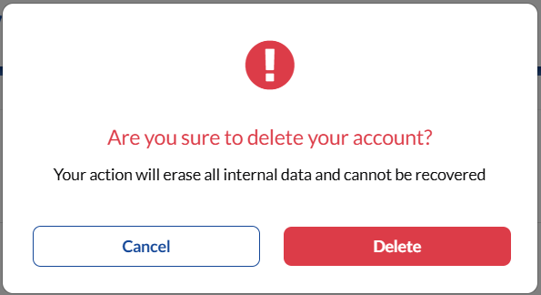 Click on Delete to delete your account.